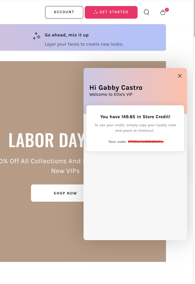 Where can I find my loyalty card number?Updated 2 months agoEach month, you’ll receive an email with your total credit balance and your loyalty card number. Additionally, you can view your points through the pop-up widget on our website. Was this article helpful? YesNo